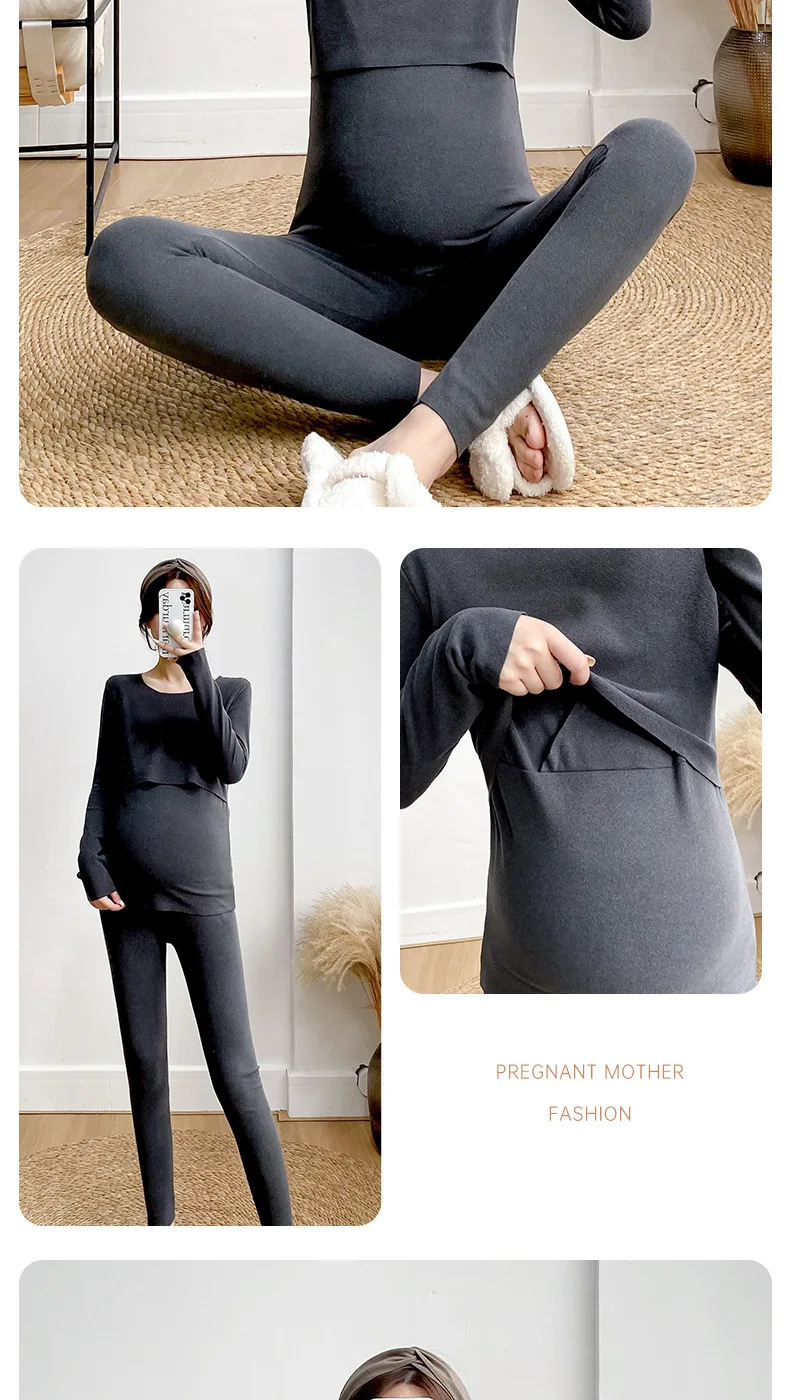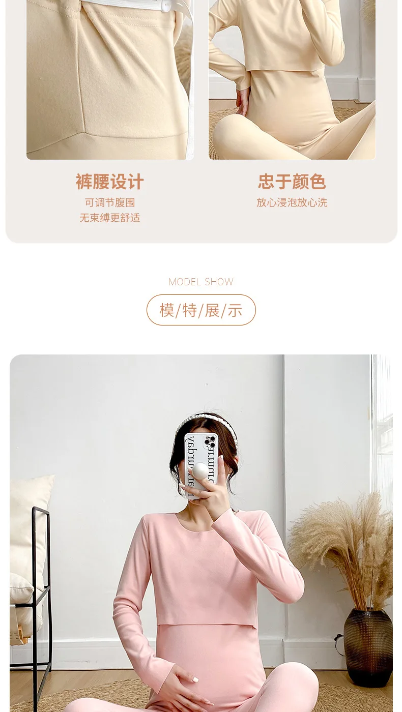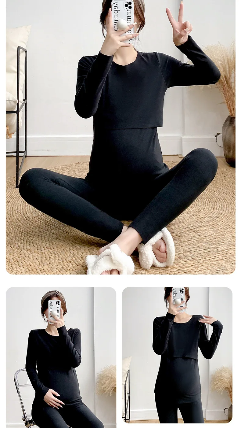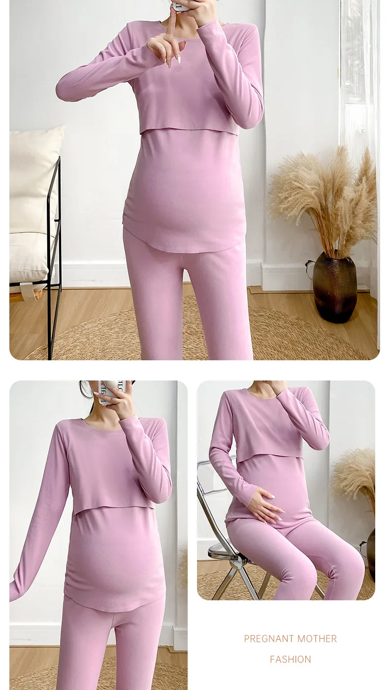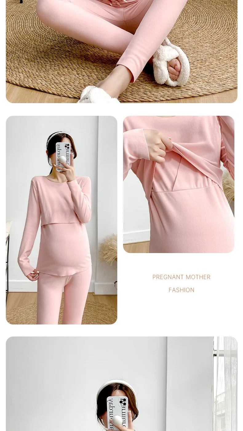Postpartum woman lactation pajamas set autumn nursing leisurewear cartoon pregnant maternity breastfeeding tops long trousers